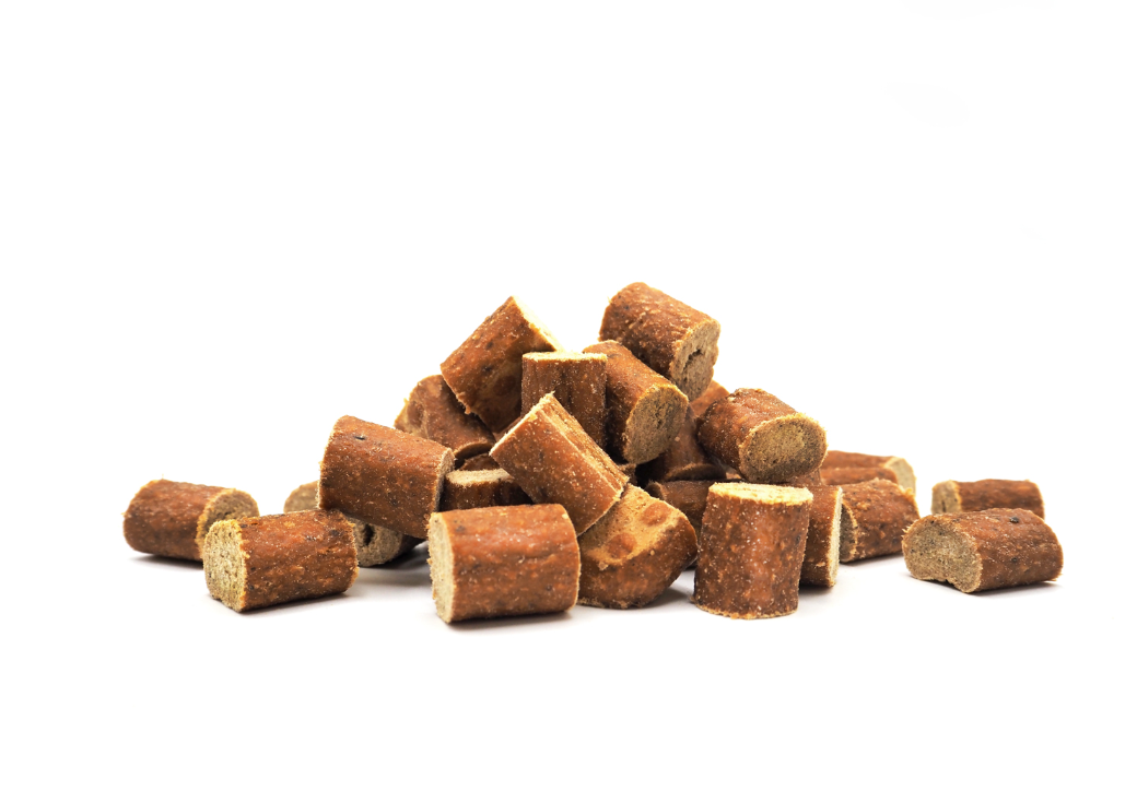 Nos bouchées au saumon sont si tendres et moelleuses qu’elles sont parfaites comme récompense quotidienne , même pour les chiens âgés et les chiots. Une friandise délicieuse qui contribue au bien-être de votre chien !