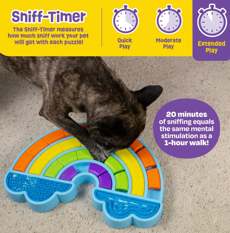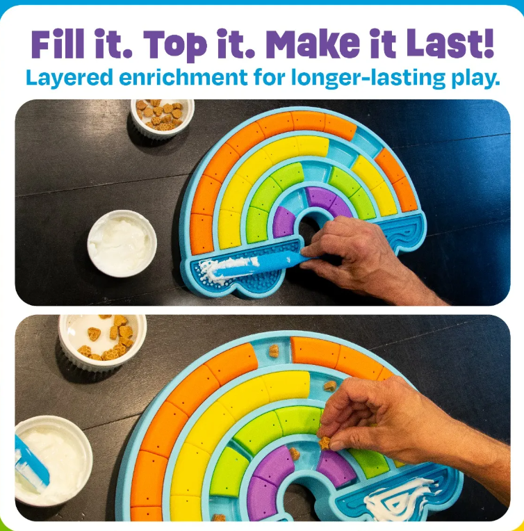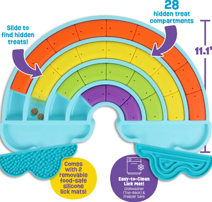 Aidez votre chien à découvrir les friandises cachées et les tapis à lécher au bout de cet arc-en-ciel !