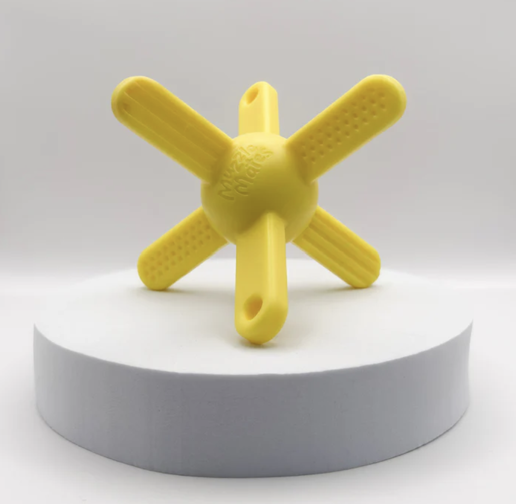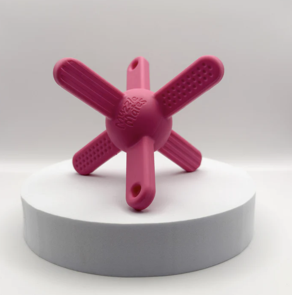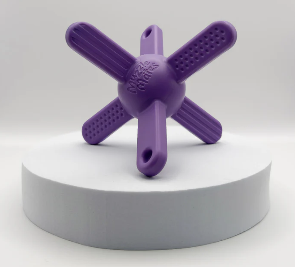 Chaque bras du Muzzle Mate mesure environ 2 cm x 1 cm . Pour un ajustement optimal, nous vous recommandons de mesurer l’espace autour du museau de votre chien avant l’achat afin de vous assurer que le jouet s’y insère confortablement, avec un peu de marge. Les chiens portant une muselière avec un espace plus important auront peut-être plus de facilité à apprendre à attraper le jouet seuls. N’oubliez pas que chaque chien apprend à son propre rythme : la patience et les encouragements sont essentiels lors de l’introduction d’un nouvel objet.
