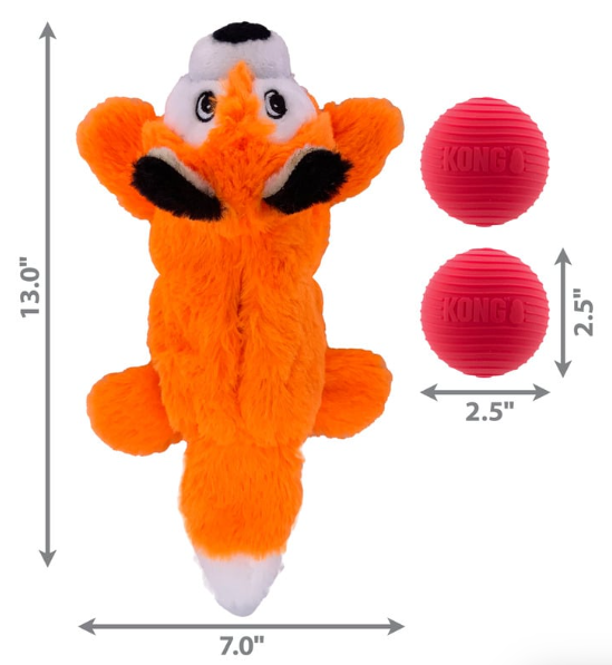 La poche interne du KONG Cozie Pockets contient deux balles couineuses qui incitent les chiens à les sortir, récompensant leurs instincts de chasse par plus de plaisir rebondissant et roulant.