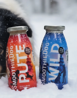SmoothieDog Édition Hiver Dinde associe de la viande de dinde tendre à des légumes et des fruits riches en nutriments. Les carottes renforcent le système immunitaire et conservent un pelage sain, tandis que la citrouille et le panais fournissent une énergie facilement digestible pour les journées froides. La pomme apporte une touche fruitée et facilite la digestion. Les grains de chia fournissent à votre chien des acides précieux d’herbe oméga-3 et le thym a un effet sur le système respiratoire – idéal pour l’hiver.